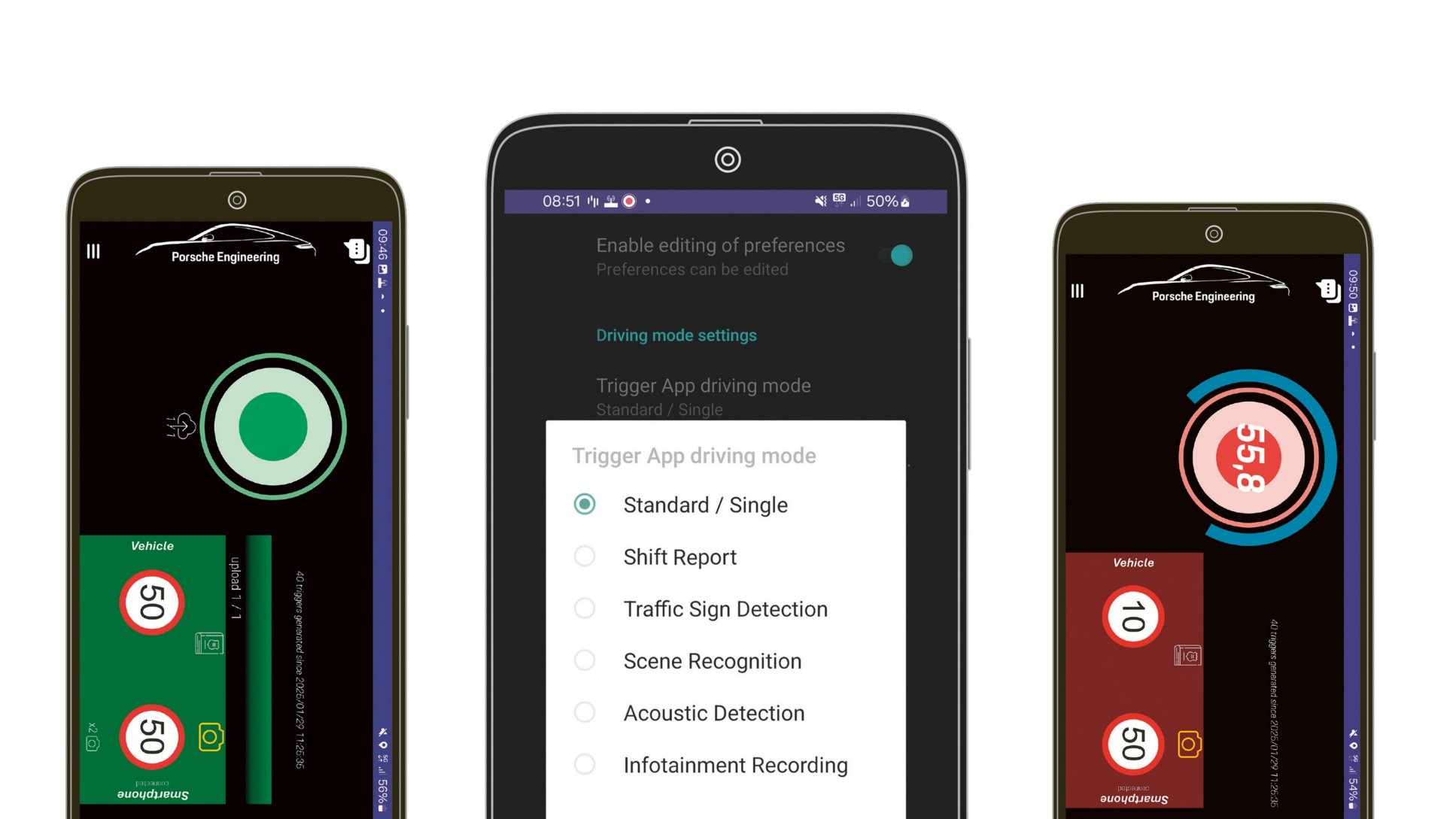 - The „scene recognition“ mode, which is still under development, is intended to capture general traffic scenarios that are relevant for ADAS functions, for example. Edge computing directly in the app also allows complex scenarios and test cycles to be recognized automatically.