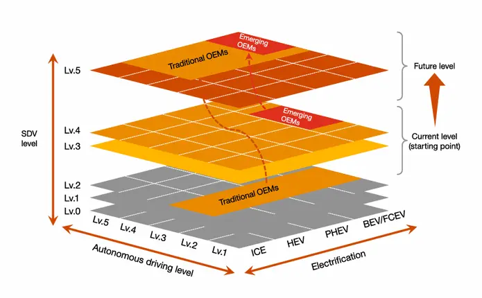 Parallel dazu zeigt sich, dass die Entwicklungsdynamik in der europäischen – teils auch nordamerikanischen – Automobilindustrie vergleichsweise gering ist. In anderen Märkten lassen sich neue Technologien häufig schneller umsetzen, da sie ohne historische Strukturen, mit weniger organisatorischen Silos und geringerer Bürokratie entwickelt werden. Das führt zu kürzeren Entscheidungswegen und einer stärkeren Fokussierung auf Entwicklungsgeschwindigkeit.