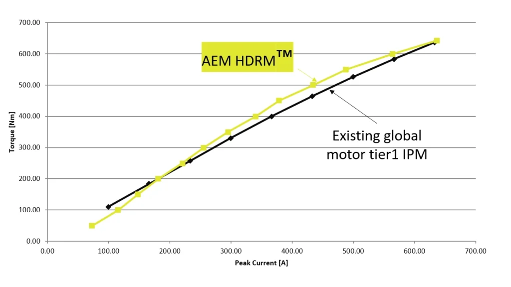 Verlauf von Drehmoment und Nennstrom (max.) von HDRM und vergleichbaren Synchronmotor. © AEM