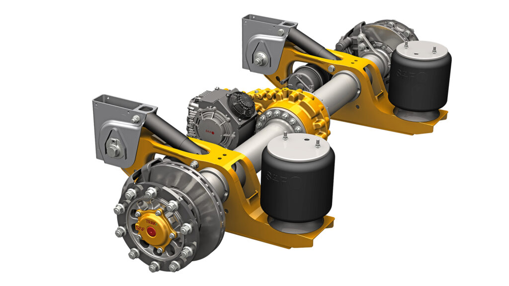 Die elektrifizierte Achse für Anhänger und Auflieger SAF TRAKr von SAF-HOLLAND nutzt den Selten-Erden-freien HDRM150-Motor mit verdichteten Wicklungen von AEM für die Rückgewinnung von Bewegungsenergie für den Betrieb von Nebenaggregaten wie Kühlanlagen oder Pumpen.