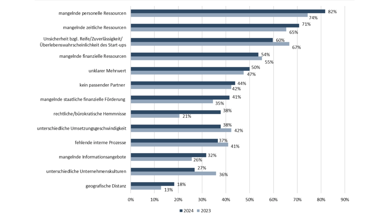 Zu den Ergebnissen gehört, dass im Vergleich zum Vorjahr (60 %) die diesjährige Befragung mit 50 % weniger etablierte Unternehmen mit Start-ups kooperieren. Dafür verzeichnete der Anteil der Unternehmen, die sich durch die Zusammenarbeit mit Start-ups eine Stärkung ihrer Resilienz erhoffen, den stärksten Anstieg. (jr)