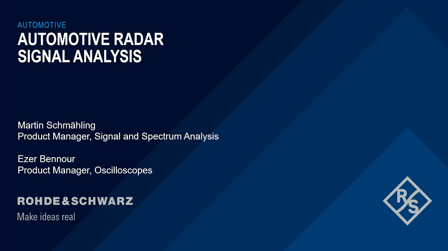In diesem Webinar referieren Rohde&Schwarz-Mitarbeiter über die grundlegenden Messungen, die für die Analyse und Überprüfung von Radarsignalen erforderlich sind. Den Anfang macht Martin Schmähling, Produktmanager für Signal- und Spektrumanalyse, mit einer Einführung in aktuelle Trends bei Automotive-Radar und einigen Radargrundlagen.