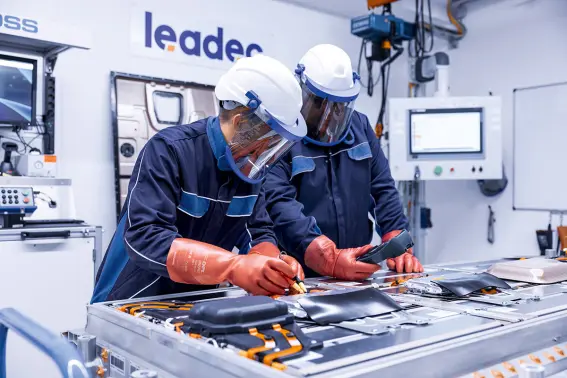 Leadec verfügt als neutraler Servicespezialist seit 2019 über Erfahrung im Umgang mit Hochvoltbatterien und bietet Dienstleistungen entlang der gesamten Wertschöpfungskette in seinem Batterie-Reparatur-Zentrum in Hoyerswerda an. Dazu zählen auch die Vormontage von Batteriebauteilen oder -bestandteilen sowie die Demontage und Zerlegung von Altbatterien verschiedener Hersteller und Typen. Zudem werden funktionsfähige gebrauchte Module für ihre spätere Verwendung in Second-Life-Energiespeichern eingelagert (Reuse). Rund 230 batteriespezifische Fehlerbilder liegen den Experten mittlerweile vor. Neben mechanischen Schäden treten vor allem elektrische und elektronische Fehler auf, elektrochemische Fehler hingegen kommen kaum vor.