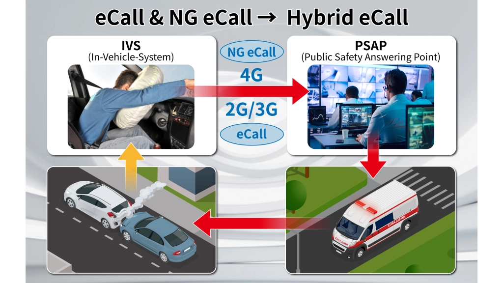 Mit der Evaluierungslösung für das fortschrittliche Automobil-Notrufsystem „Hybrid eCall“ von Anritsu können Automobilhersteller eCall-Lösungen entwickeln, die nahtlos Hochgeschwindigkeits-4G-Kommunikation (LTE) mit herkömmlichen 2G- (GSM/GPRS) und 3G-Netzwerken (W-CDMA) integrieren. Damit ist eine unterbrechungsfreie Notfallverbindung unabhängig vom Standort möglich.