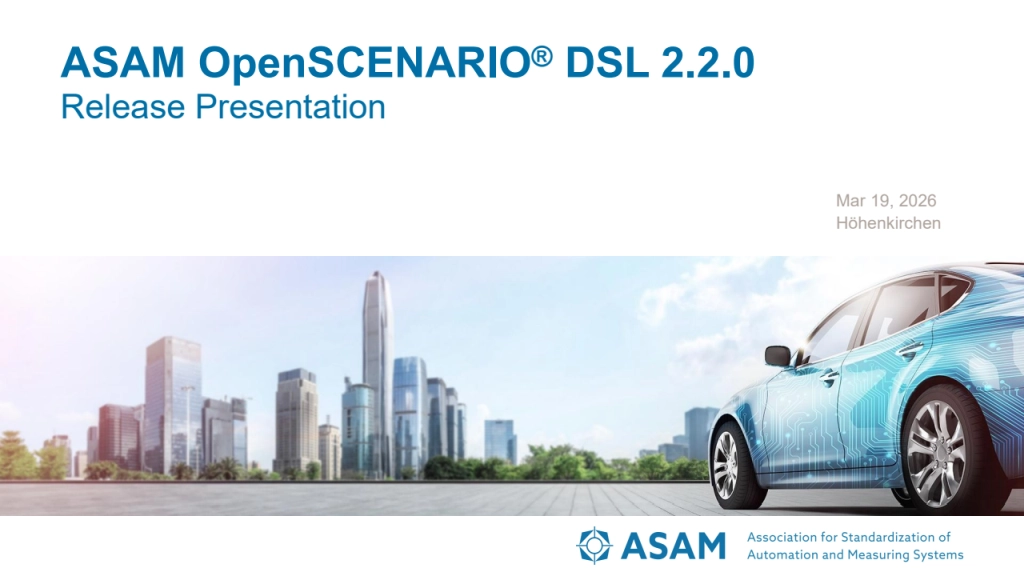 ASAM hat die Version 2.2.0 von OpenSCENARIO DSL veröffentlicht. Neben Fehlerbehebungen und einer klareren Semantik enthält diese neue Version auch Sprachverbesserungen. Dazu gehört beispielsweise die Möglichkeit, primitive Datentypen um Methoden zu erweitern, sowie die Einführung von Bereichstypen. Darüber hinaus wurde das Domänenmodell aktualisiert. Wichtige Bewegungsmodifikatoren wurden um bereichstypisierte Parameter erweitert und die Rollen der Verkehrsteilnehmer und Fahrzeugkategorien wurden zwischen ASAM OpenX und ASAM OpenSCENARIO vereinheitlicht. Zudem wurde eine Reihe von String-Methoden eingeführt. (jr)