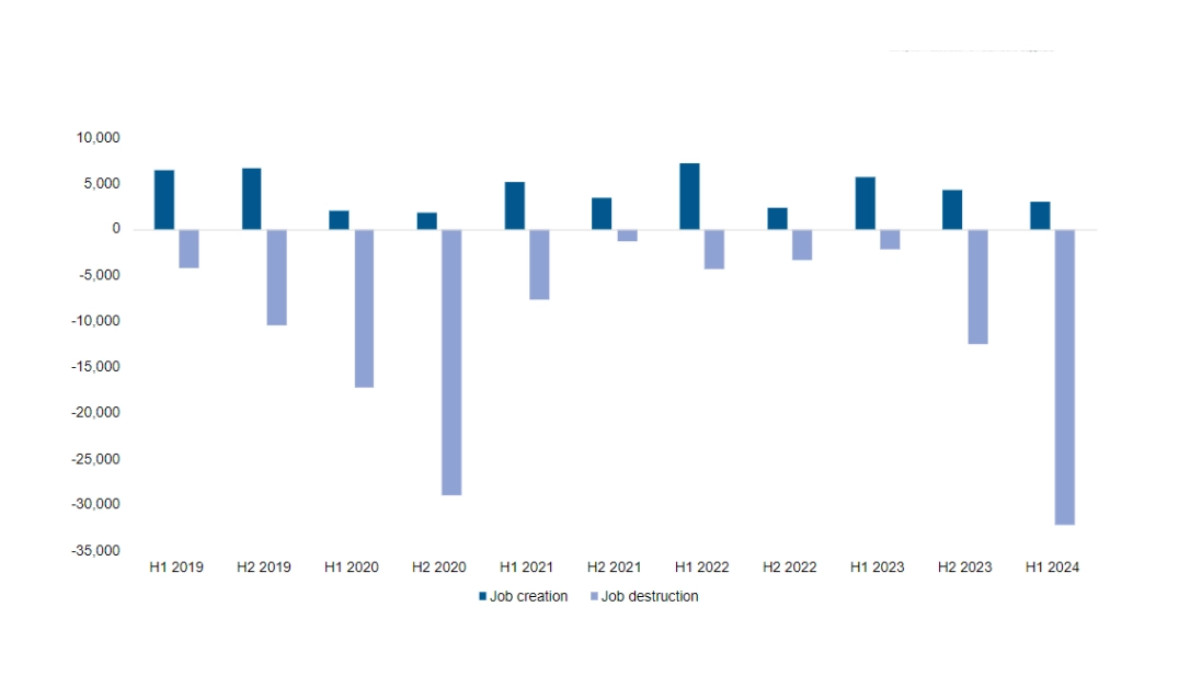 Deutschland ist mit einem Anteil von 60 % an den gesamten Arbeitsplatzverlusten am stärksten betroffen, wobei zwischen 2020 und heute voraussichtlich fast 52.000 Stellen verloren gegangen sind. (jr)