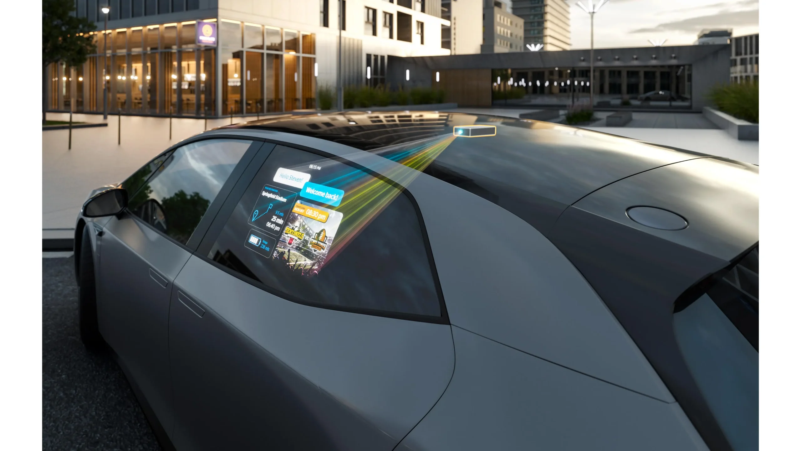 Darüber hinaus zeigt Continental seine neuesten Radar- und Kameralösungen, darunter ein AEB-System mit Single-Radar und eine KI-gestützte Nachtsichtkamera. Für ein individualisiertes Fahrerlebnis sorgen Technologien wie eine interaktive Fensterprojektion und biometrisch gesicherte OLED-Displays. Die Fensterprojektion verwandelt das Seitenfenster in ein Außendisplay, das personalisierte Inhalte anzeigen kann, etwa die Lieblingssportmannschaft, den Ladestatus oder Reiseinformationen. Die von außen sichtbare Projektion beeindruckt durch eine extrem hohe Auflösung direkt auf der Fensterscheibe.