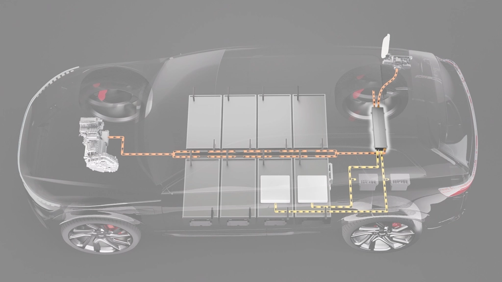 Die HV PowerBox von Forvia Hella vereint einen Hochvolt-Spannungswandler und einen Onboard Charger in einem Gehäuse. Während der Onboard Charger als Schnittstelle zwischen Elektrofahrzeug und Stromnetz fungiert, transformiert der Hochvolt-Spannungswandler die 400 Volt bzw. 800 Volt-Spannung in 12 Volt. Die Technologie soll voraussichtlich ab 2027 in Serie gehen.