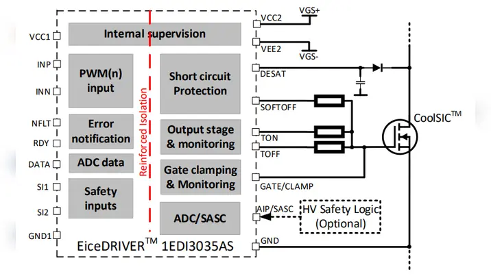 Die neuen ICs der dritten Generation, 1EDI302xAS für IGBT und 1EDI303xAS für SiC und Fusion, sind AEC-qualifiziert und erfüllen die ISO-26262-Norm. Mit einer Ausgangsstufe von 20 A sind die Bauteile 1EDI3025AS, 1EDI3026AS und 1EDI3035AS für Wechselrichter mit über 300 kW Leistung konzipiert. Die Varianten 1EDI3028AS und 1EDI3038AS mit 15 A Ausgangsstufe wurden speziell für den Einsatz in batterieelektrischen Fahrzeugen der Einstiegsklasse, Plug-in-Hybriden und elektrisch erregten Synchronmaschinen entwickelt. Eine wesentliche Neuerung ist die Tunable-Soft-Off-Funktion, die eine verbesserte Kurzschlussfestigkeit bietet und so die neuesten IGBT- und SiC-Technologien unterstützt. Zusätzlich verfügen die Bauteile über zahlreiche Überwachungsfunktionen, darunter ein integrierter Selbsttest für Entsättigungs- und Überstromschutz, was den Umgang mit latenten Systemfehlern verbessert. (oe)