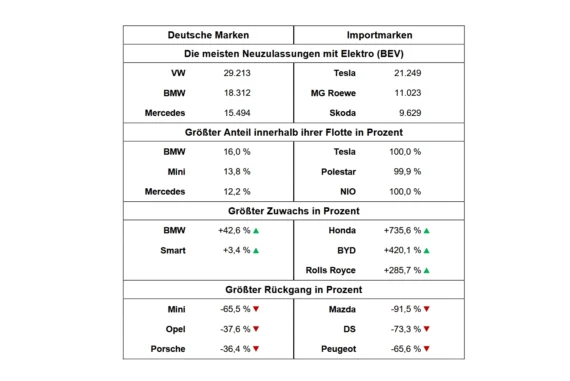 Im ersten Neuzulassungshalbjahr des Jahres 2024 wurden laut KBA 645.649 Neuwagen mit alternativen Antrieben (BEV, Hybrid, Plug-in, Brennstoffzelle, Gas, Wasserstoff) in Deutschland zugelassen. Ihr Anteil am Gesamtneuzulassungsvolumen von 1.471.641 Pkw betrug 43,9 %. Die Anzahl alternativ angetriebener Neuwagen lag nach sechs Zulassungsmonaten in 2024 somit um 2,2 % über dem Vergleichszeitraum des Vorjahres.