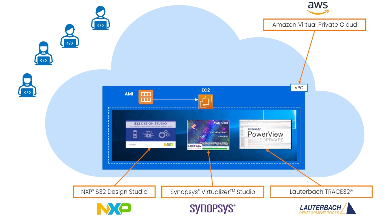 Auf Basis des Synopsys Virtual Development Kits (VDK) haben Lauterbach, NXP Semiconductors, AWS und Synopsys eine virtuelle Entwicklungslösung entwickelt, die das Debuggen und Profilieren von NXP-SDV-Prozessoren mit den TRACE32-Tools über die Cloud ermöglicht. Die Lösung wurde erstmals auf der NXP-Anwenderkonferenz „NXP Technology Days 2025“ in Stuttgart einem größeren Publikum live präsentiert und nutzt dabei einen virtuellen Zwilling des Echtzeit-Prozessors NXP S32Z27 als Hardwareplattform. Für die Entwicklung der SDV-Software steht in der Amazon-EC2-Cloud die vorintegrierte Tool-Umgebung NXP Cloud Studio zur Verfügung.