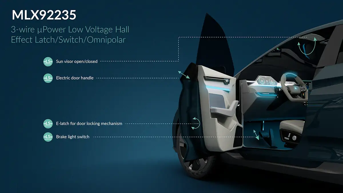 Melexis hat den MLX92235 vorgestellt, einen besonders stromsparenden Hall-Effekt-Schalter, der für Anwendungen im Automobilbereich wie Türgriffe, E-Schlösser, Sonnenblenden und Bremslichtschalter entwickelt wurde. Das Bauteil bietet eine präzise und zuverlässige Aktualisierung des Ausgangssignals und erfüllt die Anforderungen an Mikrostromanwendungen mit hoher Genauigkeit und Konsistenz.
