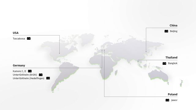 Der globale Batterie-Produktionsverbund von Mercedes-Benz besteht aus acht Fabriken an sieben Standorten auf drei Kontinenten. © Mercedes-Benz The Mercedes-Benz global battery production network consists of eight factories at seven locations on three continents.
