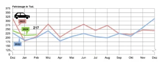 Vor allem der Absatz von E-Fahrzeugen brach ein: Während im Dezember 2022 mehr als 100.000 batterieelektrische Autos zugelassen wurden, kamen im Januar lediglich rund 18.100 neu auf die Straßen. Und bei Hybriden ging es von fast 70.000 auf weniger als 9000 Zulassungen zurück. Grund dafür dürften wohl die gesenkten Förderprämien sein. Plug-in-Hybride werden seit Jahresbeginn nicht mehr gefördert, und bei vollelektrischen Fahrzeugen erhalten Käufer nun statt 6000 noch 4500 Euro, wenn ihr Wagen mit weniger als 40.000 Euro netto in der Verkaufsliste steht. Für Fahrzeuge bis zu einem Netto-Listenpreis von 65.000 Euro gibt es noch 3000 Euro statt bislang 5000 Euro. (oe)