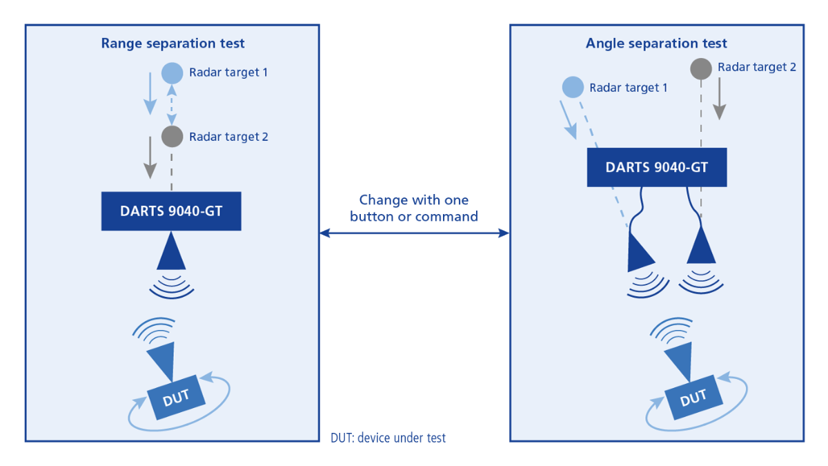 Die beiden Ziele können mit einem Front-End (gleicher Ankunftswinkel) oder aufgeteilt auf zwei Front-Ends (unterschiedliche Ankunftswinkel) simuliert werden. © dSpace