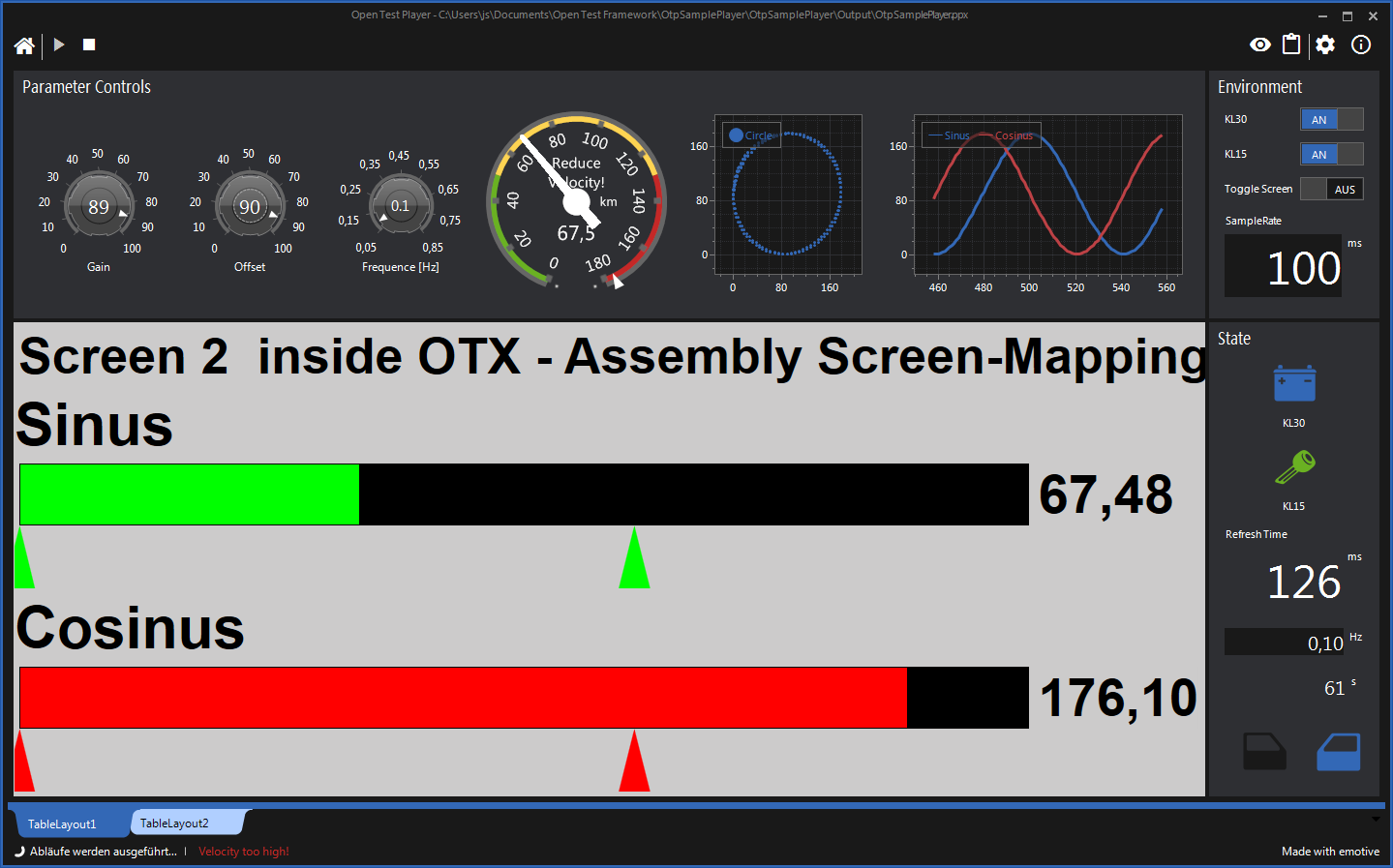 Beim Open Test Player (OTP) von emotive handelt es sich um einen komplett generischen, OTX basierten Tester zur einfachen Verteilung und Ausführung von Prüfsequenzen. Aufgrund der einfachen Erstellbarkeit eines Players ohne Programmierkenntnisse wird der OTP besonders dann eingesetzt, wenn etablierte Tester nicht schnell und flexibel genug an neue Steuergeräte oder Prüfabläufe angepasst werden können. Zum Beispiel in der Prototypen-Werkstatt von Entwicklung und Produktion: Hier können mit Hilfe des OTP Steuergeräte ohne die Verwendung zahlreicher Spezialtools einfach und schnell in Betrieb genommen werden. Auch können Bauteileverantwortliche mit ihrem Steuergerät einen Player ausliefern, der die grundlegenden Funktionen des Steuergeräts zur Verfügung stellt.
