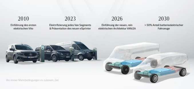 Ab 2026 werden alle neu entwickelten Vans von Mercedes‑Benz nur noch auf der Architektur Van Electric Architecture (VAN.EA) basieren.