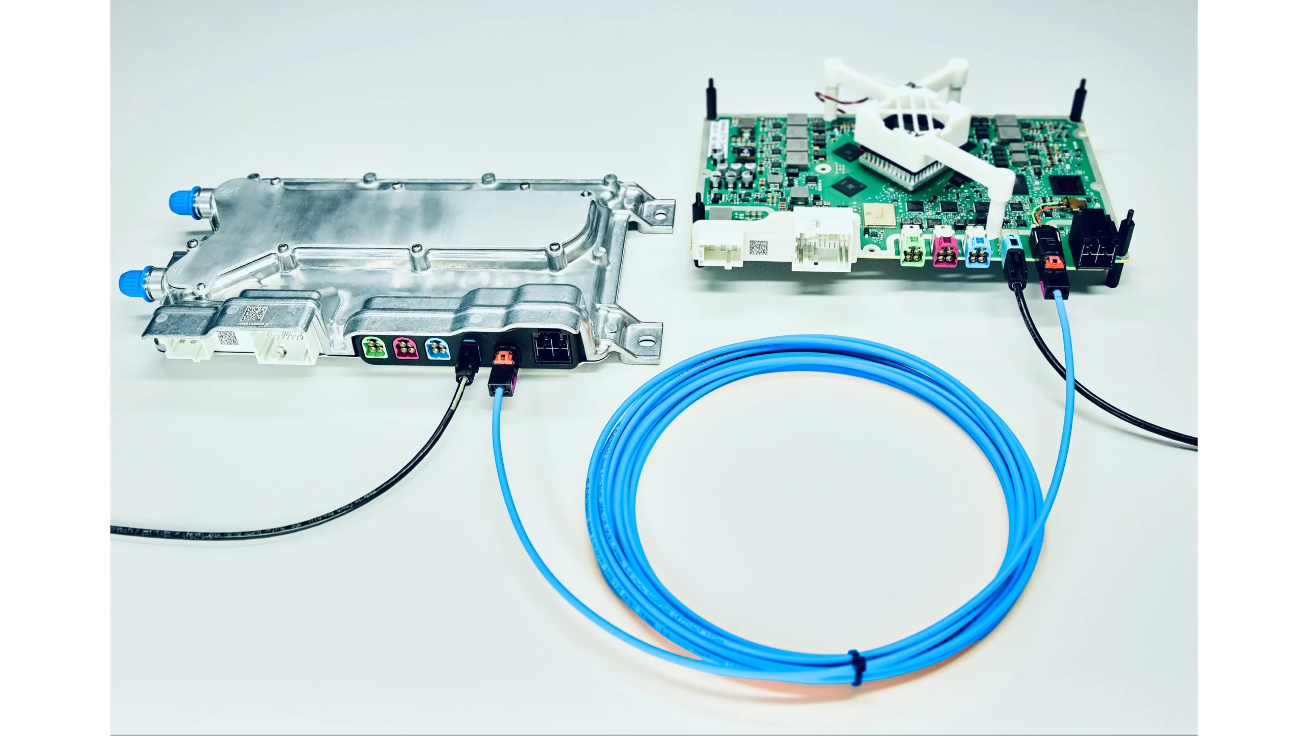 ZF integriert mit dem Hochleistungsrechner ProAI erstmals optisches Multi-Gigabit-Ethernet nach dem Standard IEEE 802.3cz-2023 in Fahrzeugarchitekturen. Die neue Technologie ermöglicht Datenübertragung mit bis zu 50 Gbit/s über Glasfaserkabel von bis zu 40 Metern Länge – geeignet für Pkw, Lkw und Busse. „Die optische Übertragung ist eine Schlüsseltechnologie für softwaredefinierte Fahrzeuge“, so Oliver Briemle, Leiter Cross-Domain Computing bei ZF. Sie bietet hohe Bandbreiten, geringen Energieverbrauch, elektromagnetische Unempfindlichkeit und ist zugleich skalierbar und zukunftssicher. Das optische Multi-Gigabit-Ethernet bietet nahezu ideale Kommunikationskanäle mit geringer Komplexität der physikalischen Schicht. Dies führt zu einer geringeren Equalization-Komplexität, keiner Echokompensation und somit zu einem geringeren Stromverbrauch und geringerer Latenz.