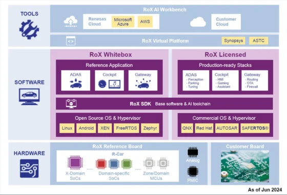 R-Car Open Access (RoX) ist eine Entwicklungsplattform von Renesas, die alle wesentlichen Hardwarekomponenten, Betriebssysteme (OS), Anwendungssoftware und Tools zusammenführt, die Automobilentwickler für die schnelle Realisierung von Fahrzeugen der nächsten Generation benötigen. Hierbei ist die Unterstützung kontinuierlicher Software-Updates sichergestellt, die den höchsten Sicherheitsanforderungen entsprechen. Die SDV-Plattform wurde für die System-on-Chips (SoCs) und Mikrocontroller (MCUs) der R-Car-Familie von Renesas entwickelt. Sie enthält umfassende Tools für die integrierte Bereitstellung von KI-Anwendungen. Dank der Vorabintegration aller grundlegenden Software-Layer, die für die Entwicklung von SDVs erforderlich sind, reduziert RoX die Komplexität für Automobilhersteller und Tier-1-Zulieferer.