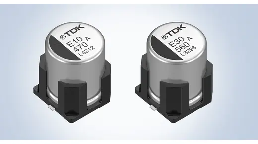 TDK erweitert die SMD-Hybrid-Polymer-Elektrolyt-Kondensatoren der Baureihe B409x um vibrationsfeste Varianten, die mechanischen Belastungen bis 30 g gemäß MIL-STD-202, Methode 204, standhalten. Die erhöhte Robustheit wird durch vier aus der Grundplatte herausgeführte Schenkel erreicht, die den Kondensatorbecher zusätzlich stabilisieren. Die neuen Ausführungen tragen das Suffix 100, während die Standardvarianten mit 000 gekennzeichnet sind, und richten sich insbesondere an anspruchsvolle Automotive- und Industrieanwendungen.