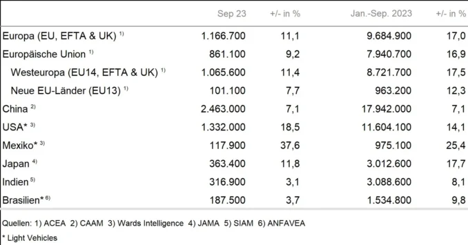 Die internationalen Automobilmärkte haben in den ersten drei Quartalen des Jahres 2023 mehrheitlich einen Anstieg der Neuzulassungen verzeichnet, die Wachstumsraten sind auf den meisten Märkten positiv (siehe Grafik).