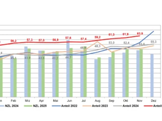 Der Trend zu Pkw mit alternativen Antrieben hält an. Ihr Anteil stieg in den ersten elf Monaten 2025 auf 58,5 % – im November lag er im Jahresverlauf bei 57,9 %. BEV-Anteil steigt leicht auf 18,8 %.