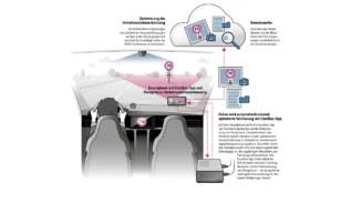 Porsche Engineering setzt Smartphones zur Verkehrszeichenerkennung ein und vergleicht die so gewonnenen Informationen zur Validierung mit den Ergebnissen der im Fahrzeug integrierten ADAS-Funktion.