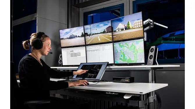 Für autonomes Fahren auf Level 4 nach SAE sieht die deutsche Gesetzgebung eine Technische Aufsicht vor. Das Fahrzeug steuert und überwacht sich dabei selbstständig, nur in seltenen Fällen greift eine solche Aufsicht ein. Dies kann auch aus der Ferne erfolgen. Um die Einführung dieser Form des autonomen Fahrens zu unterstützen, hat das DLR einen Arbeitsplatz für die Technische Aufsicht entwickelt. Im Fokus steht dabei die Schnittstelle zwischen dem Menschen, der aus der Ferne bei Bedarf eingreift, und den autonomen Fahrzeugen – das Human-Machine-Interface (HMI). Mit diesem „Remote Operation Workplace“ gehört das DLR zu den Vorreitern in diesem Bereich. Denn bisher gibt es nur wenige Vorschläge, wie solche Arbeitsplätze gesetzeskonform aussehen könnten.