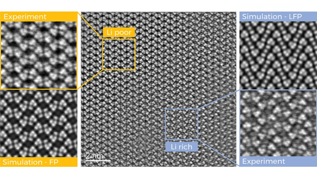 Bei Untersuchungen mit Transmissionselektronenmikroskopen konnten Forschende der TU Graz die Lithium-Ionen auf ihrem Weg durch das Batteriematerial systematisch verfolgen, ihre Anordnung im Kristallgitter einer Eisenphosphat-Kathode mit noch nie dagewesener Auflösung abbilden und ihre Verteilung im Kristall genau quantifizieren.