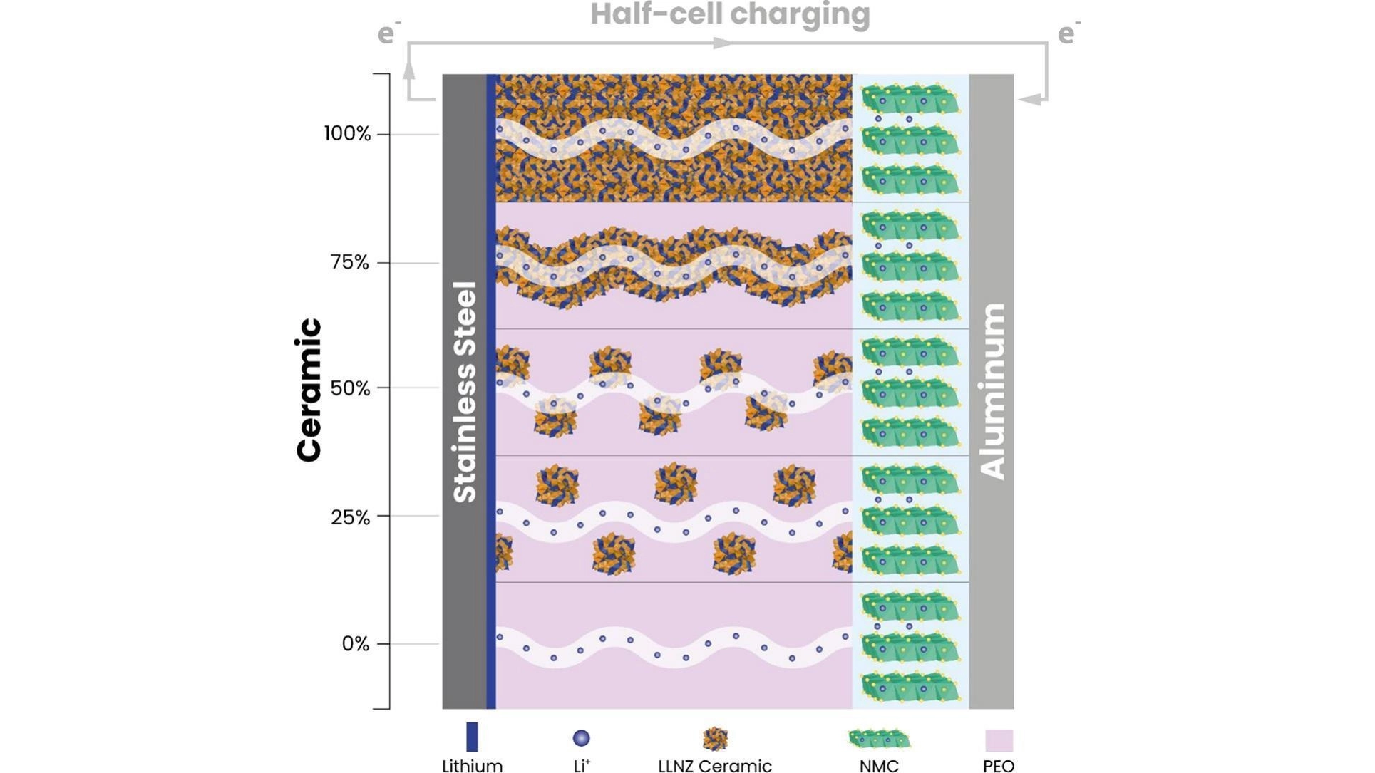 In ihrer Studie untersuchte das Team von Reis die Möglichkeit, keramische und polymere Elektrolyte zu Kompositelektrolyten zu vermischen, die die einzigartigen Vorteile von keramischen Elektrolyte (hohe Ionenleitfähgkeit; Stabilität bei hohen Spannungen) und Polymerelektrolyten (höhere Flexibilität als Keramik) zu vereinen.