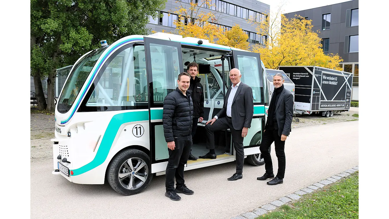 Die Technische Hochschule Ingolstadt (THI) hat im Reallabor „Automatisierte Mobilität Ingolstadt“ erstmals ein selbstfahrendes Shuttle im öffentlichen Straßenverkehr eingesetzt. Das weiß-grüne Fahrzeug des Herstellers Navya verbindet den Campus an der Esplanade mit dem Paradeplatz. Ziel des Projekts ist es, automatisierte Fahrzeuge unter realen Bedingungen zu erproben, Sicherheitsaspekte weiterzuentwickeln und zu untersuchen, wie sich diese Systeme sinnvoll in den Alltag integrieren lassen.